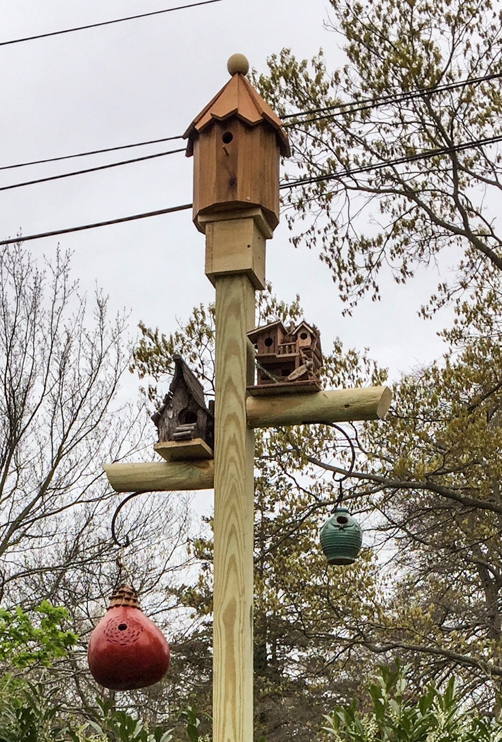 Primary riser poll hinges at the bottom for easy maintenance at the end of each year. Within one week birds were landing on it and prospecting homes.